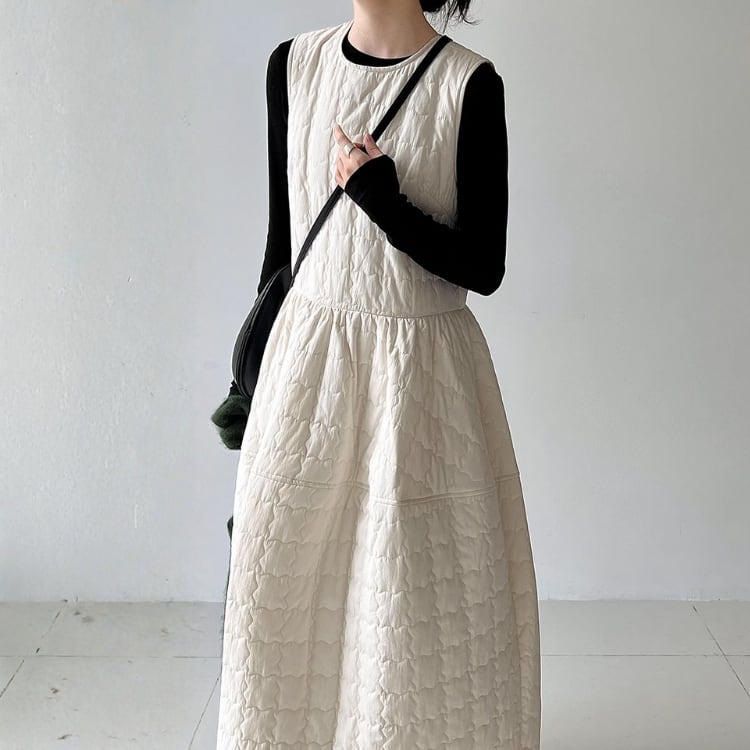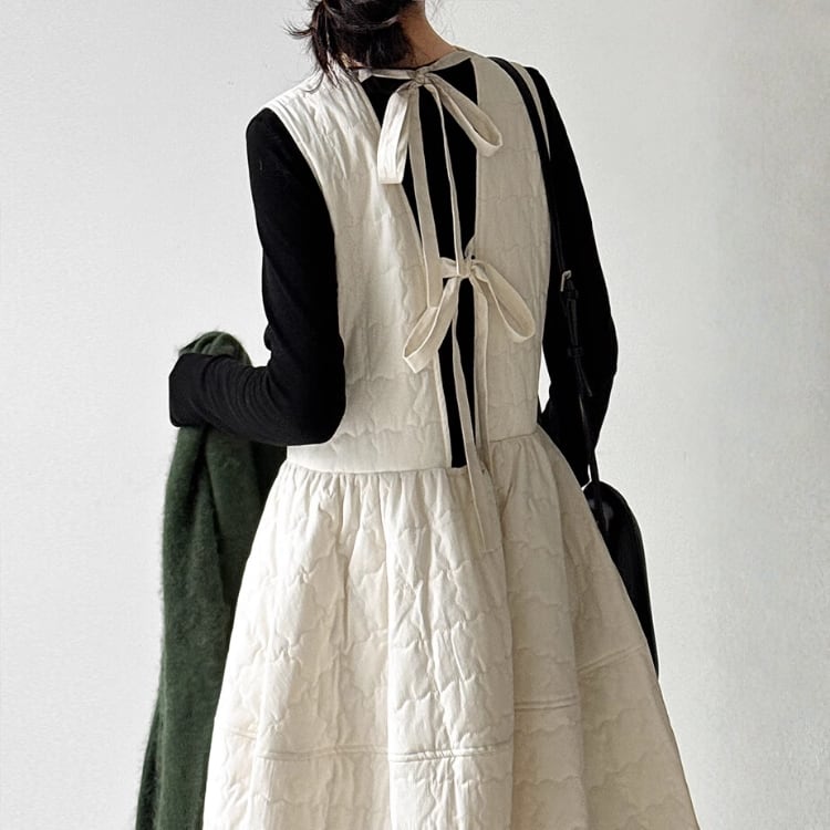バックリボン キルティング ノースリーブワンピース 1col N00227
