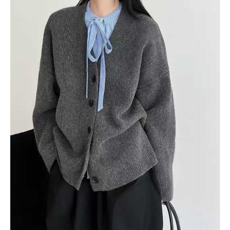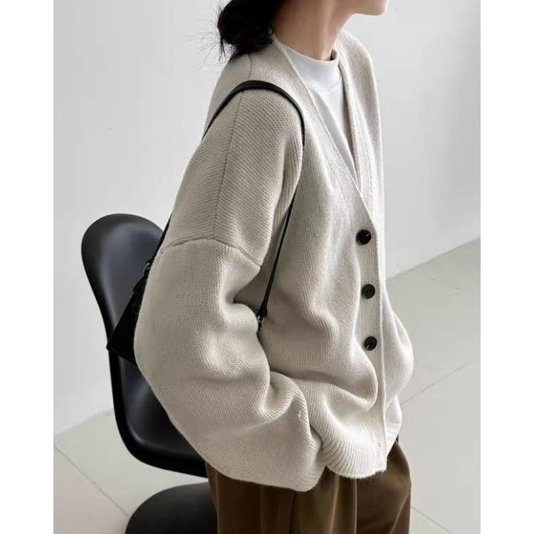 ボタンフロント 長袖オーバーサイズ カーディガン 3col N00233