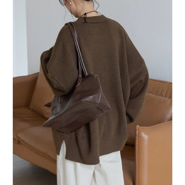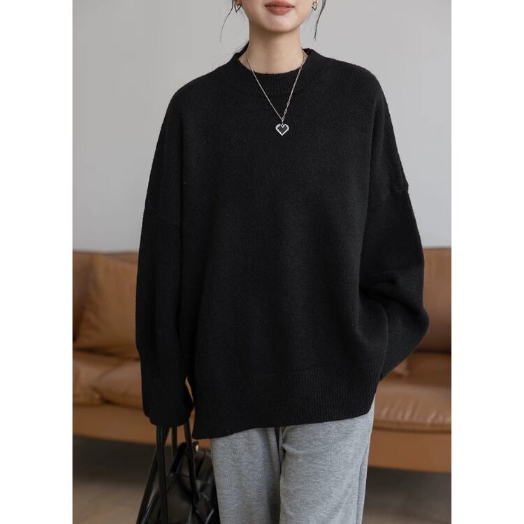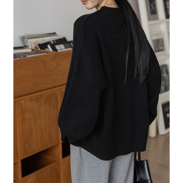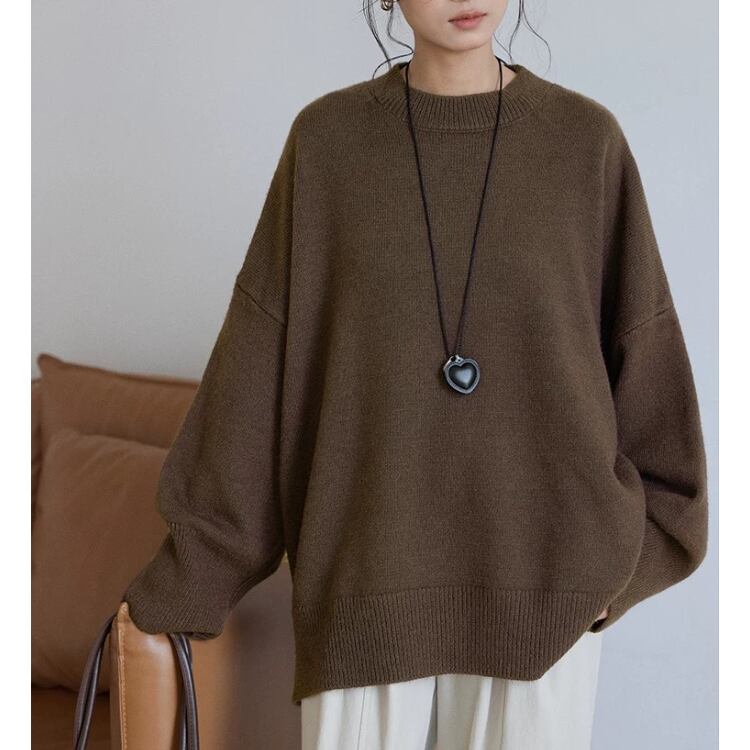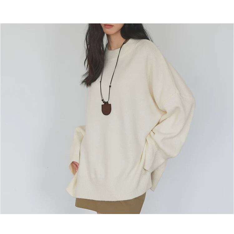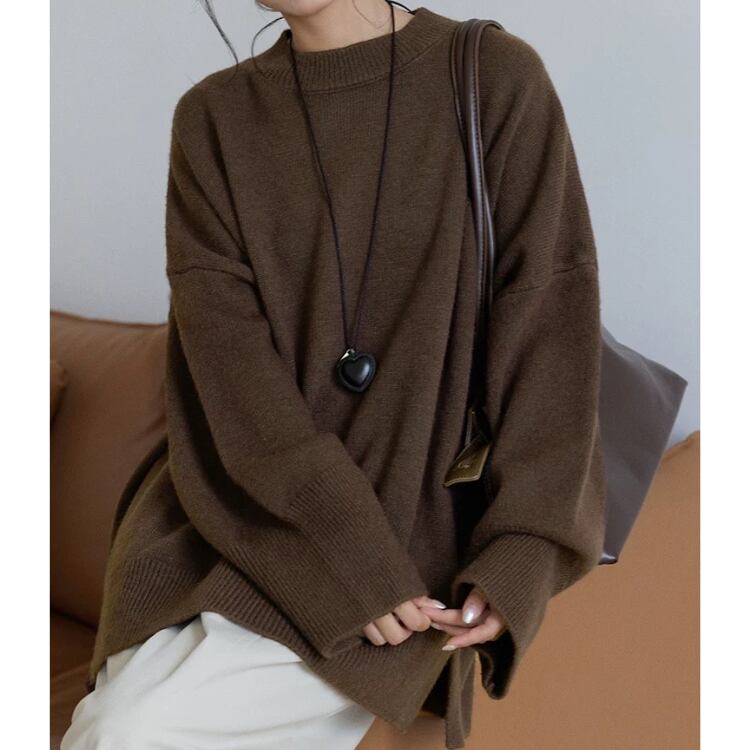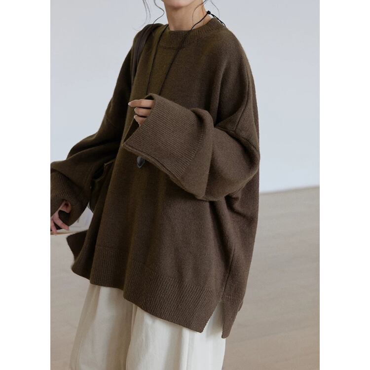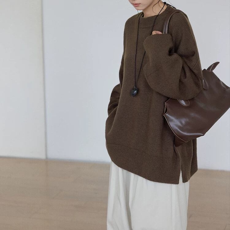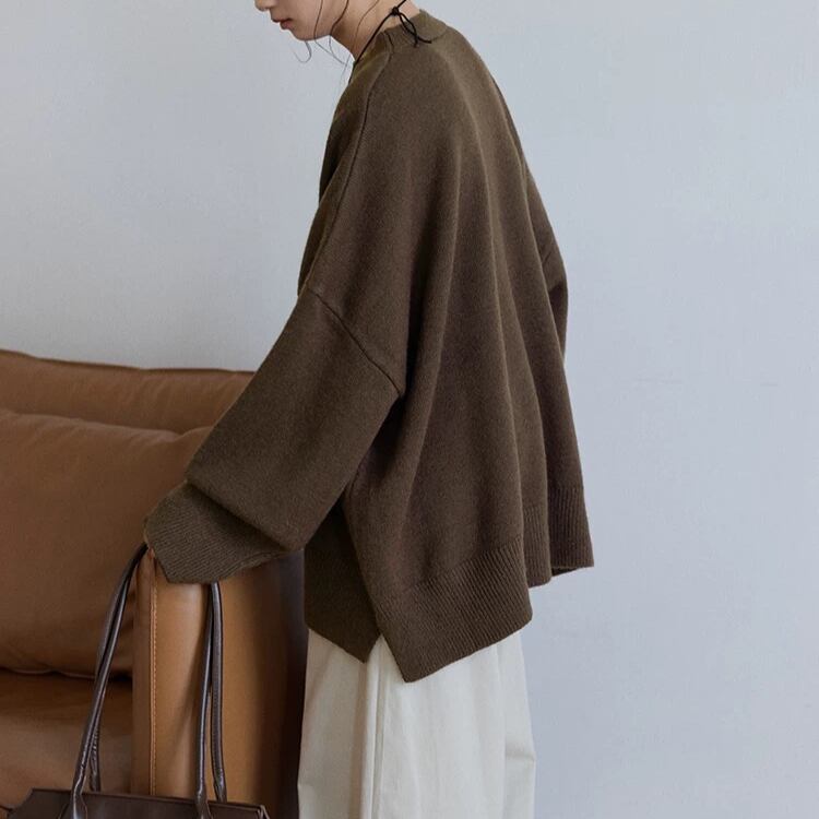 長袖オーバーサイズ サイドスリットニット プルオーバー 3col N00236