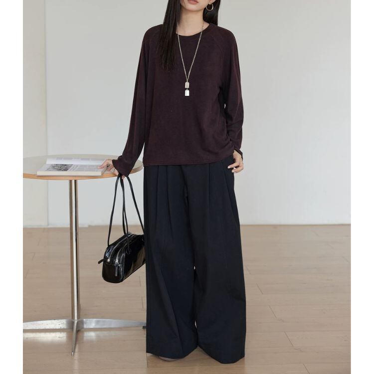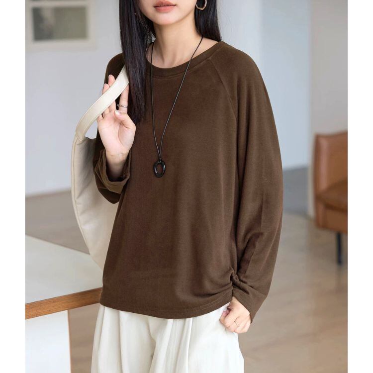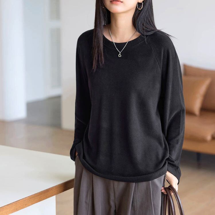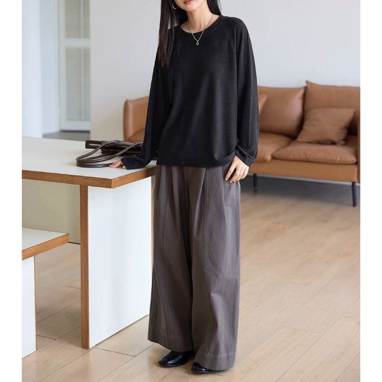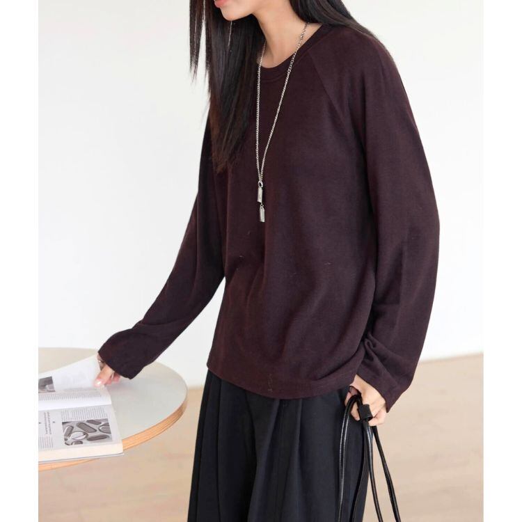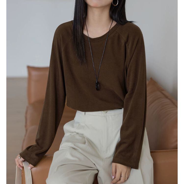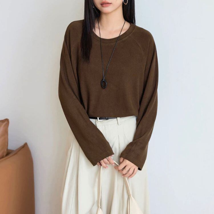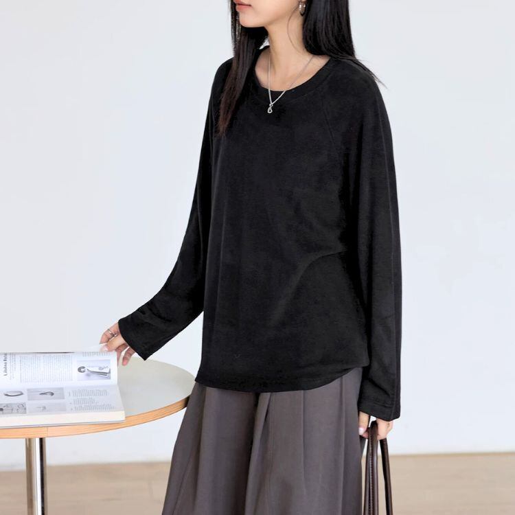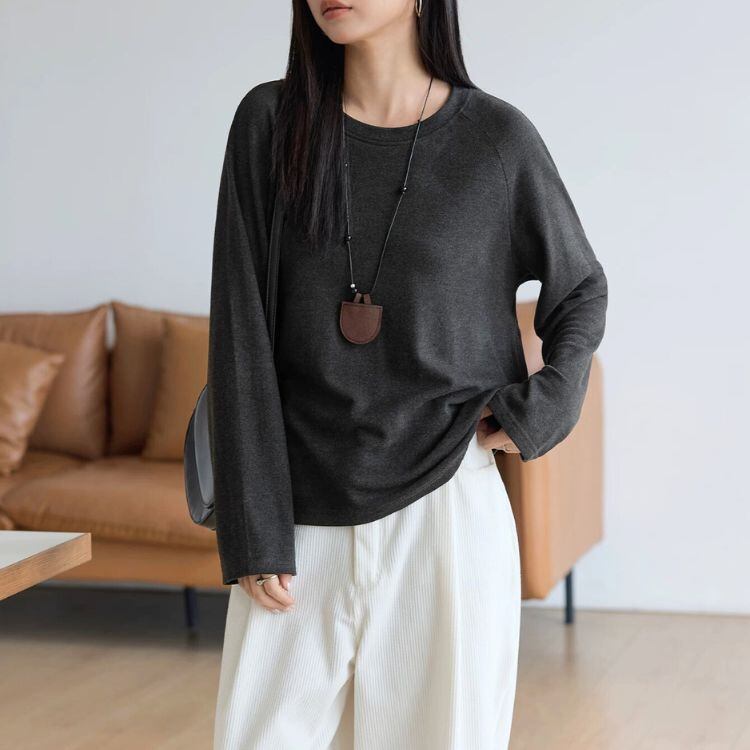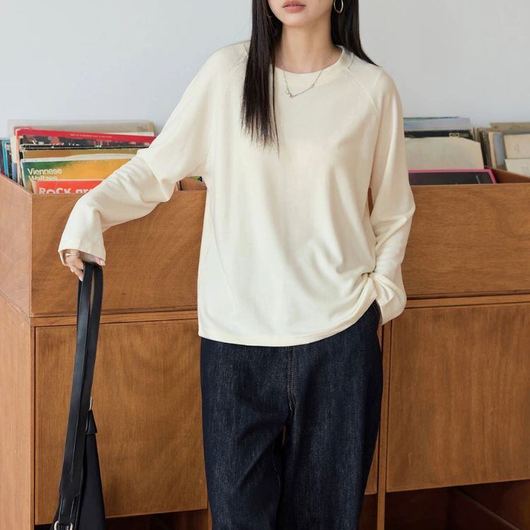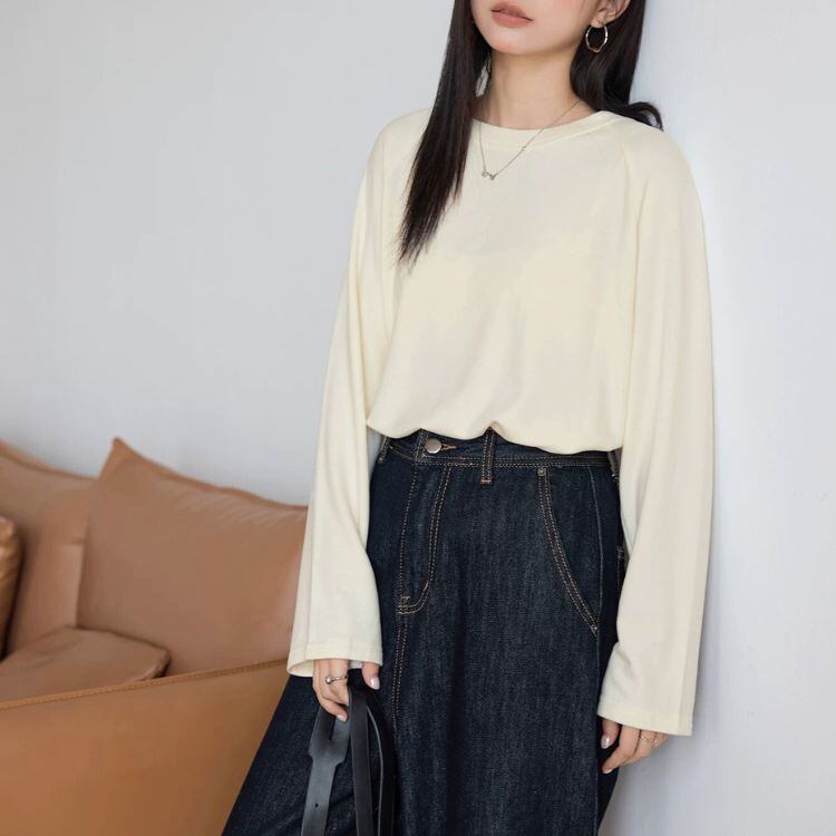 ラウンドネック ヒップ丈 長袖カットソー 5col N00240