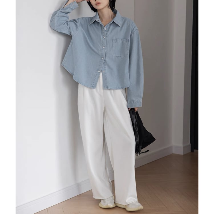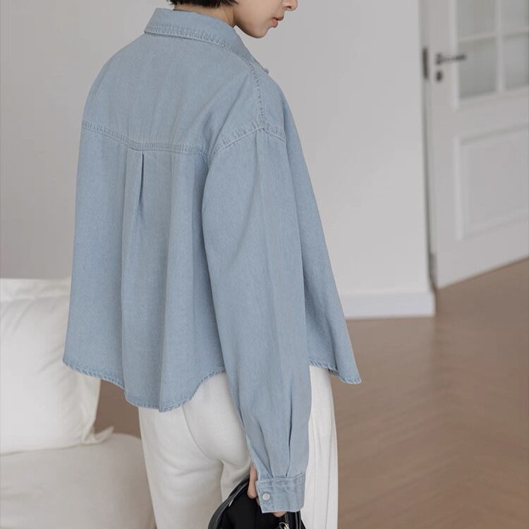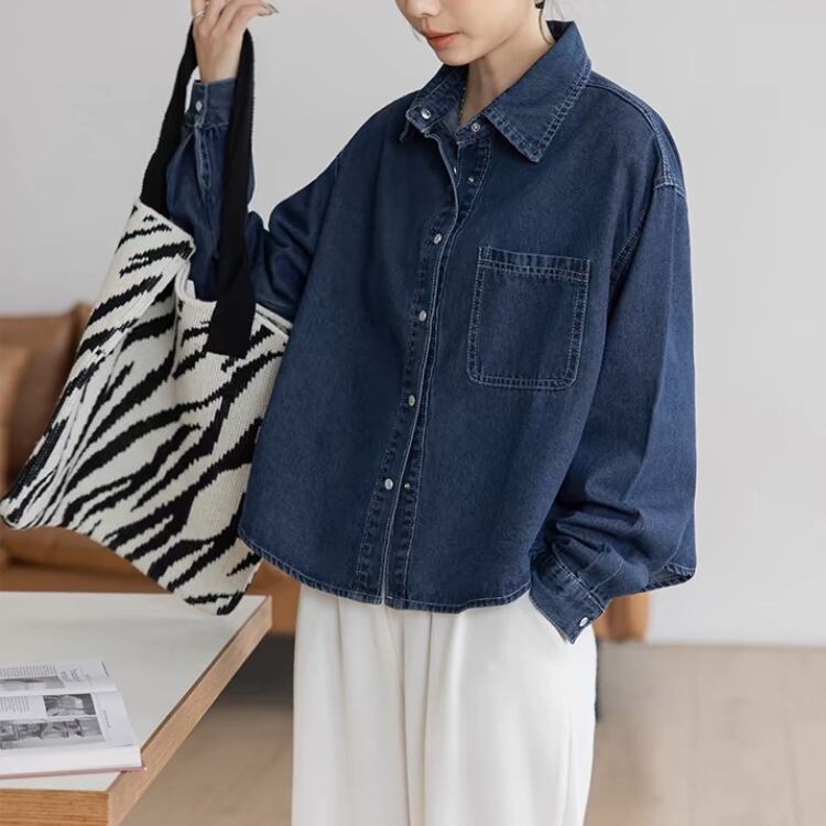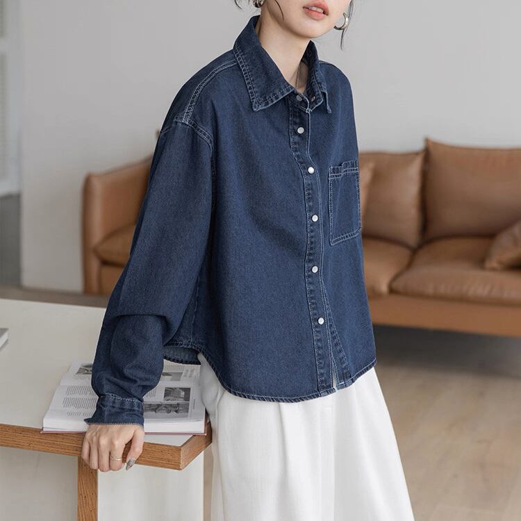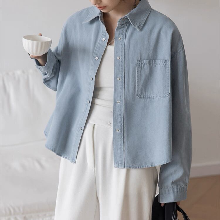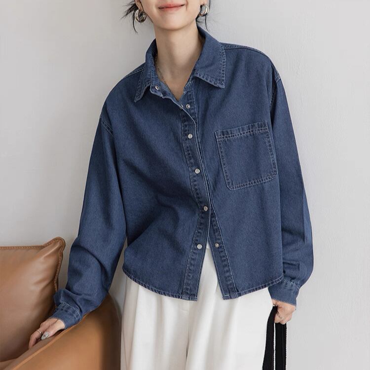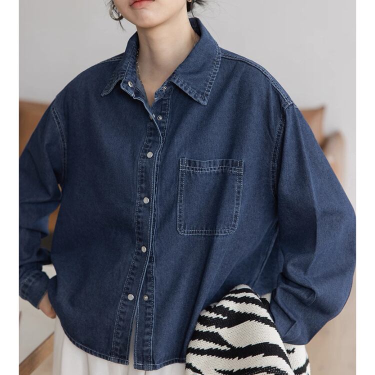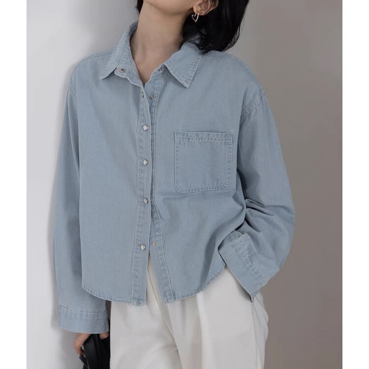 パッチポケット 長袖 デニムシャツ 2col N00244