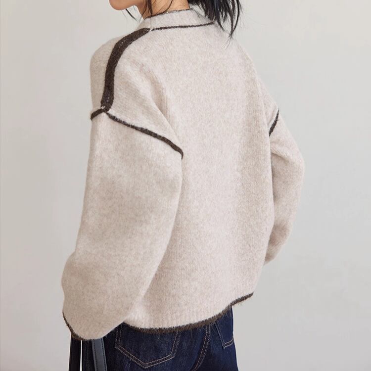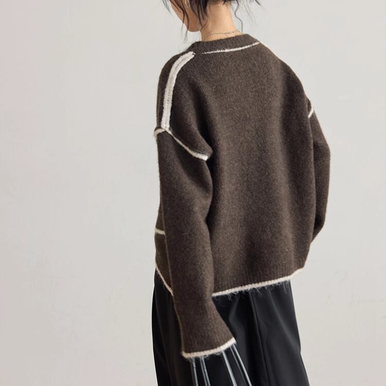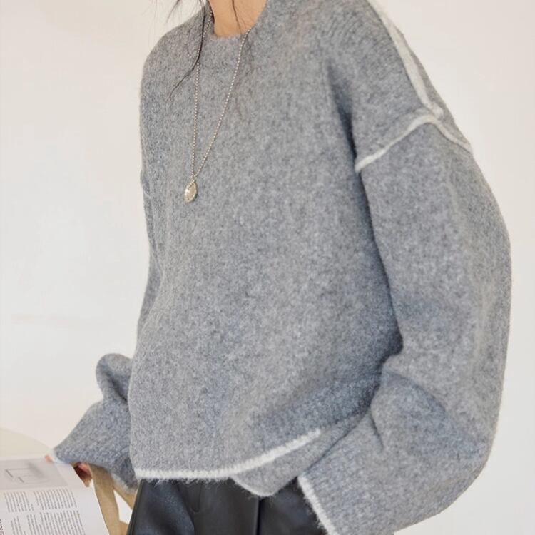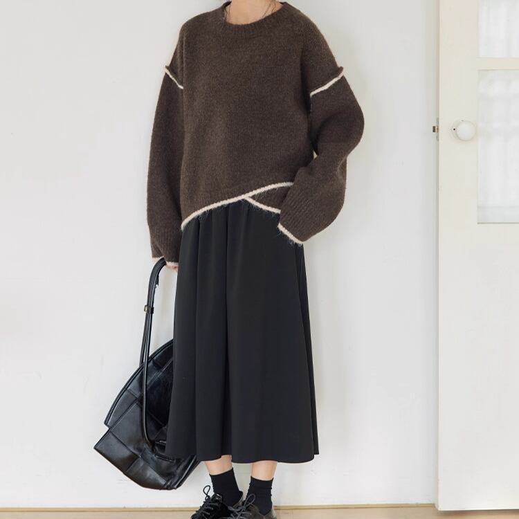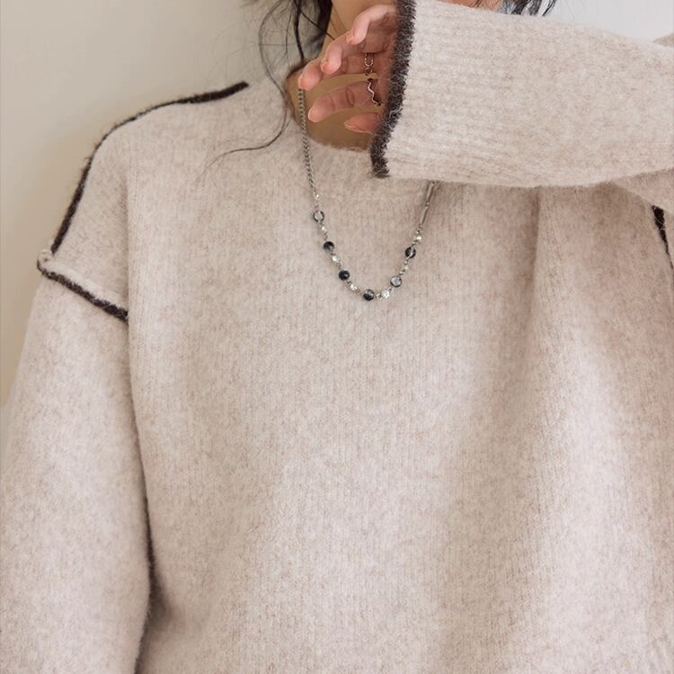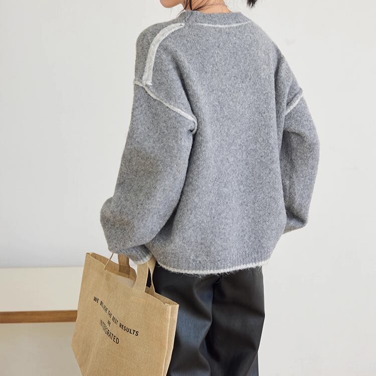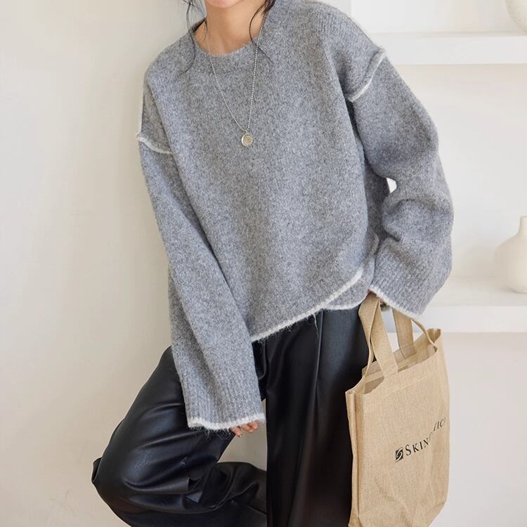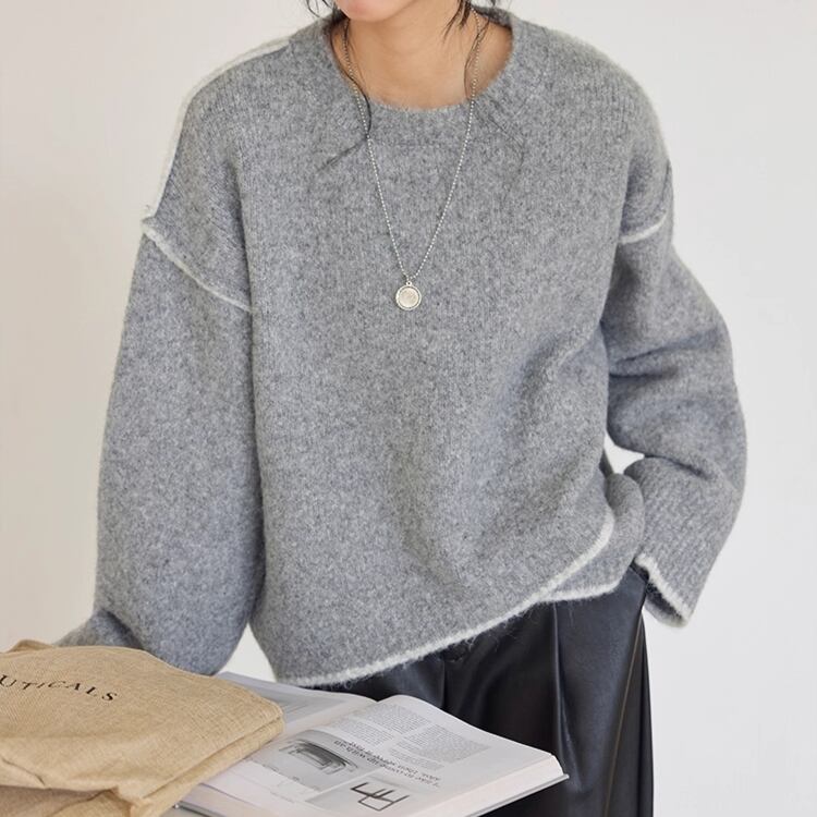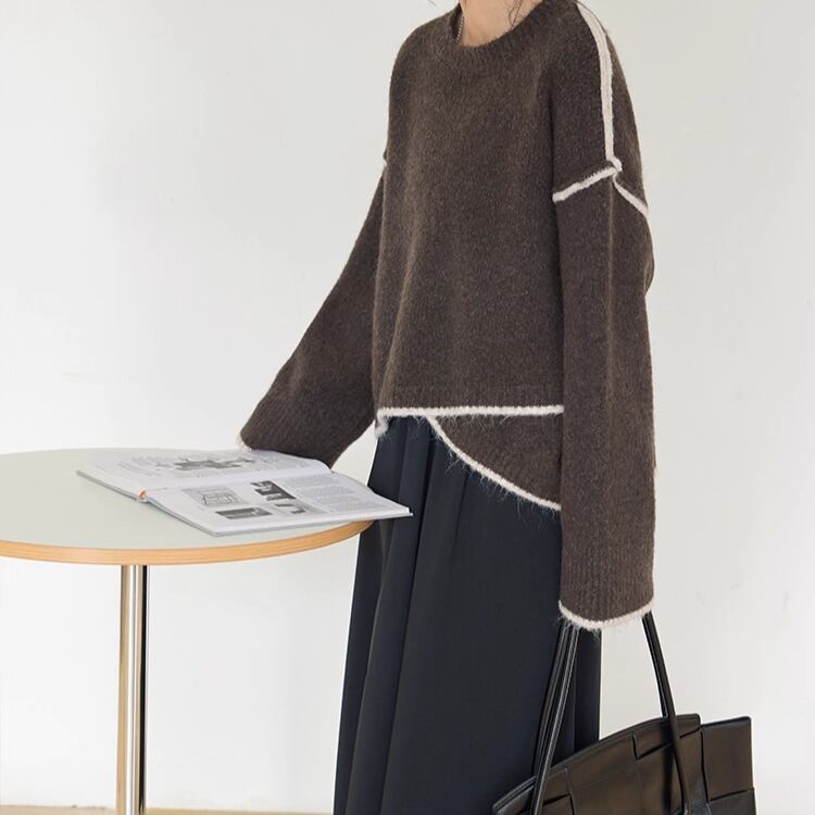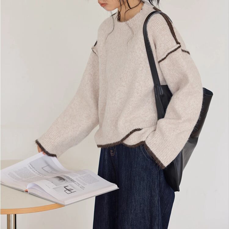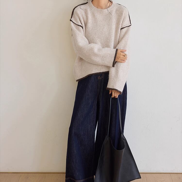 配色ステッチ ドロップショルダー プルオーバーニット 3col N00245