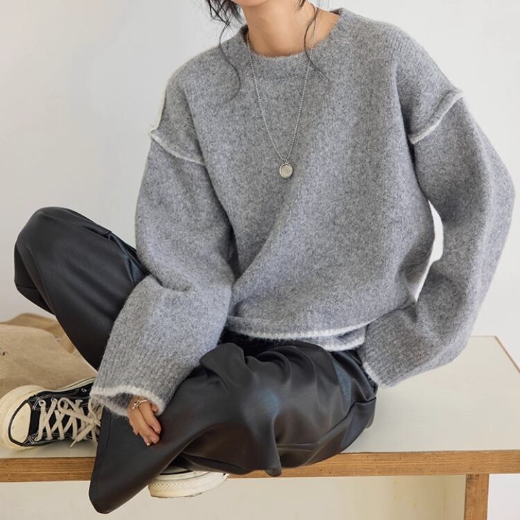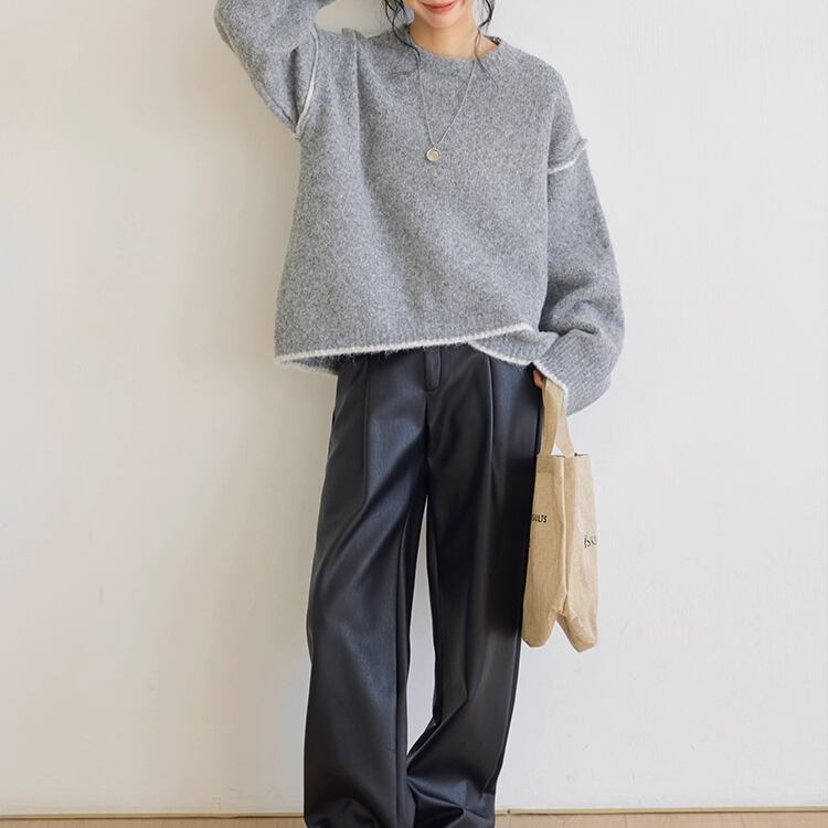 ルーズなシルエットで、こなれ感を演出するプルオーバーニット。