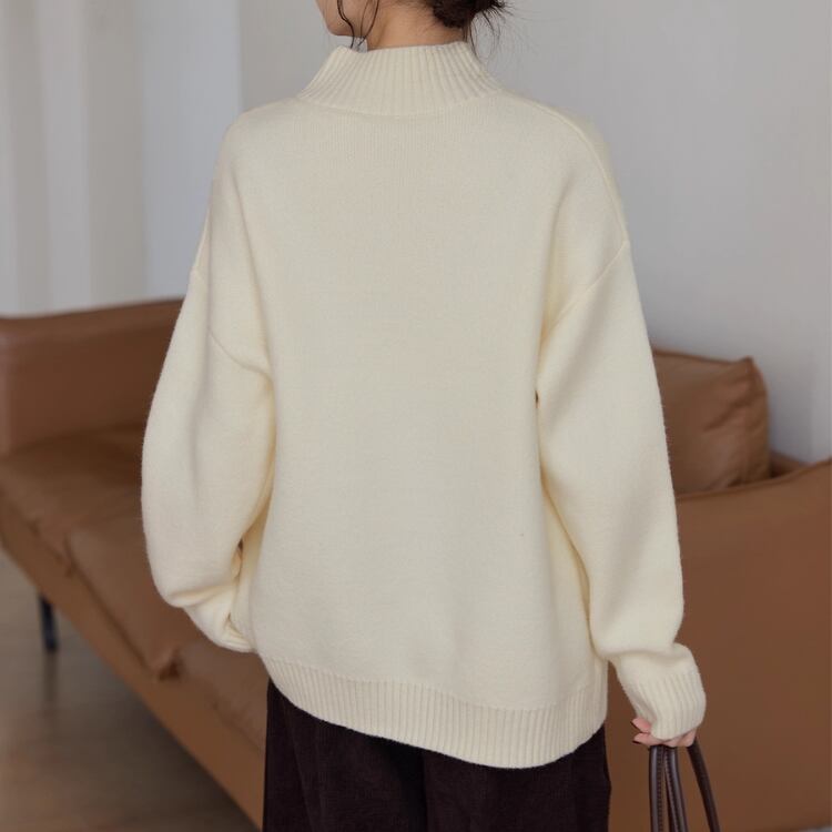 飾りボタン 長袖 ニットプルオーバー 1col N00249