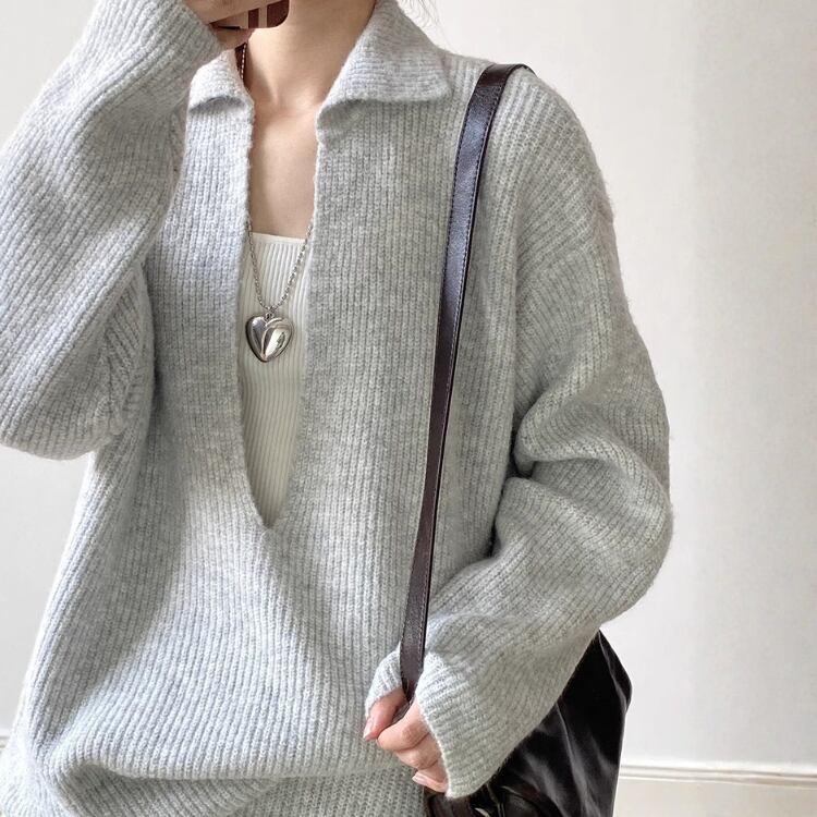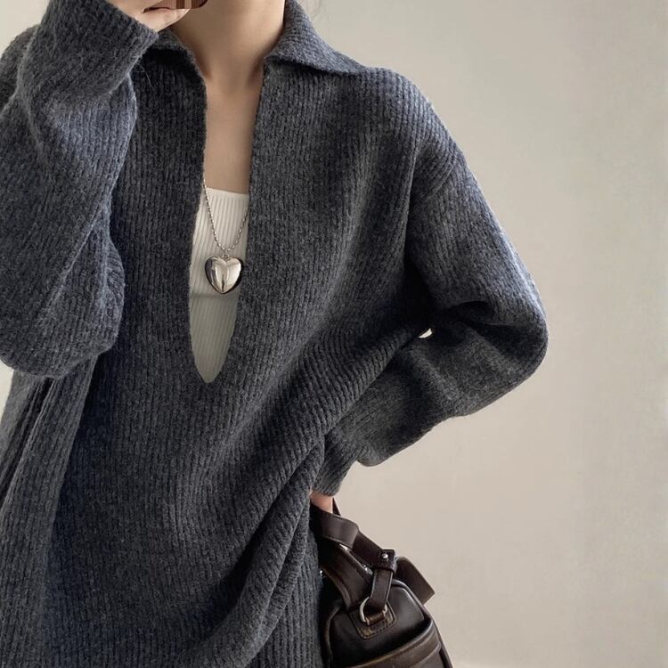 Vネックプルオーバーはデコルテを美しく見せ、女性らしさを引き立てます。